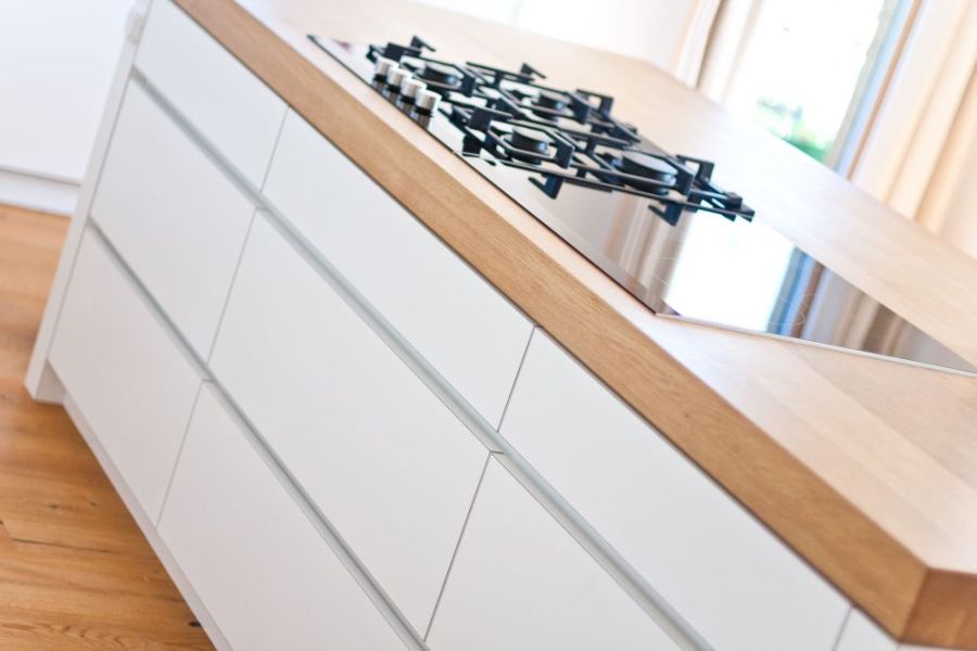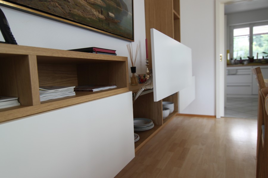 Weiß matt lackiert mit schlichter geölter Natureiche