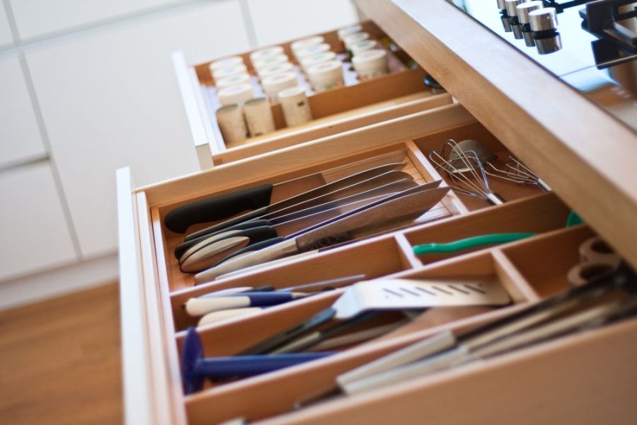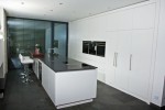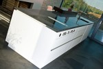 Alles in einer Reihe mit übertiefer Arbeitsplatte in Mineralwerkstoff