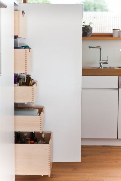 Grifflose Küche mit massiver Natureiche kombiniert, auch hinter der Front Schreinerqualität ...