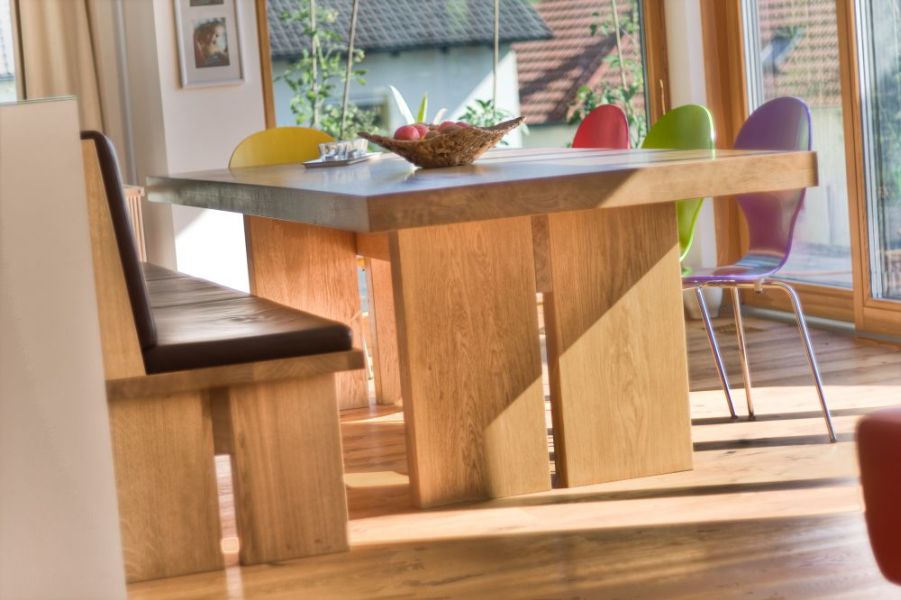 ... angrenzender Essbereich in massiver, schlichter Natureiche