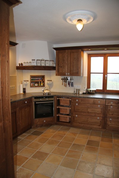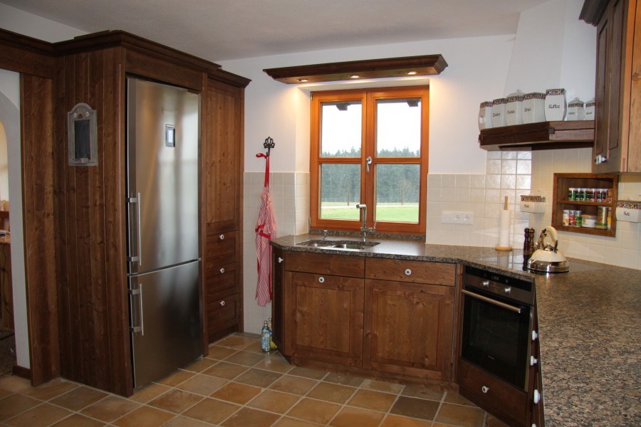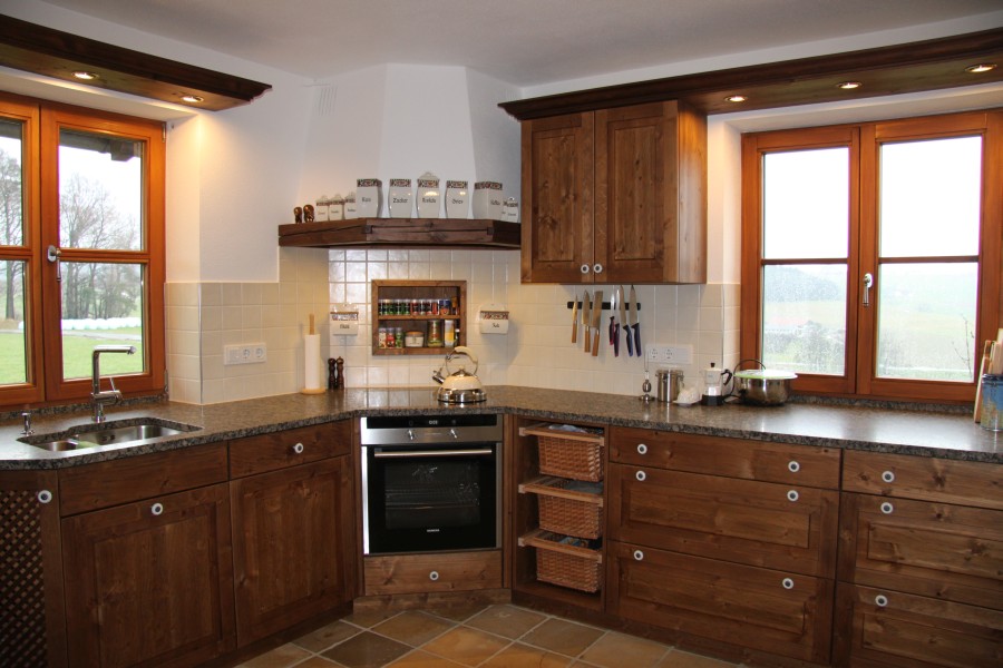 Landhausküche in dunkler massiver Fichte
