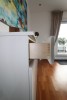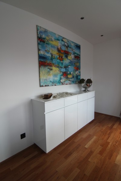 Edle Kombination in weiß Hochglanz und massivem Nussbaum