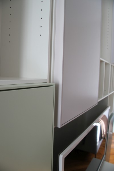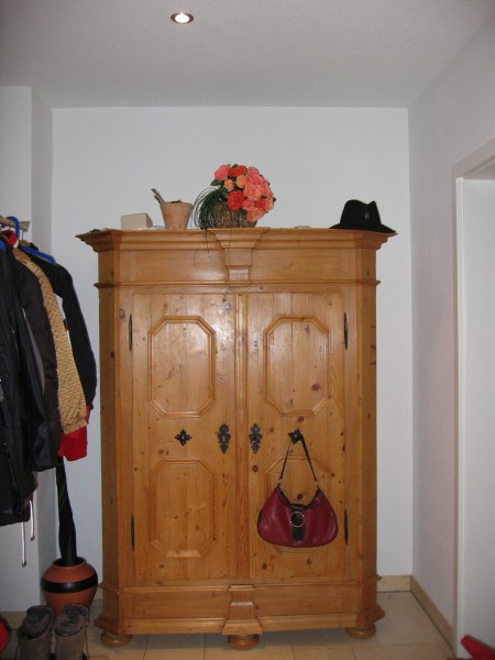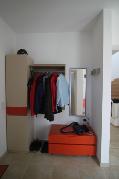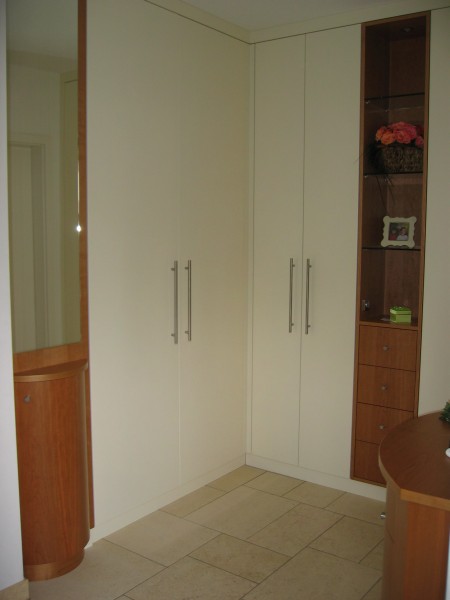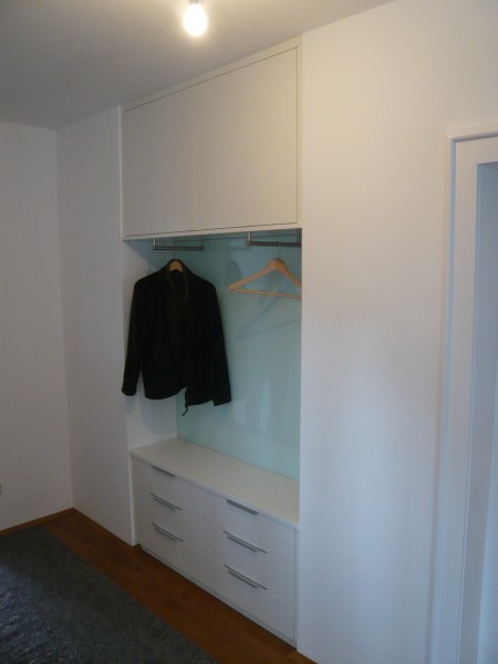 Garderobe in weiß Lack und Kirschbaum (vorher und nachher)