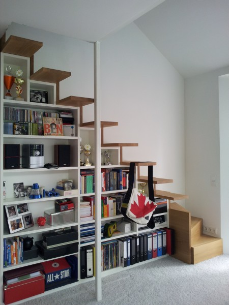 Regal als Treppe und CD-Regal in einer Mauernische