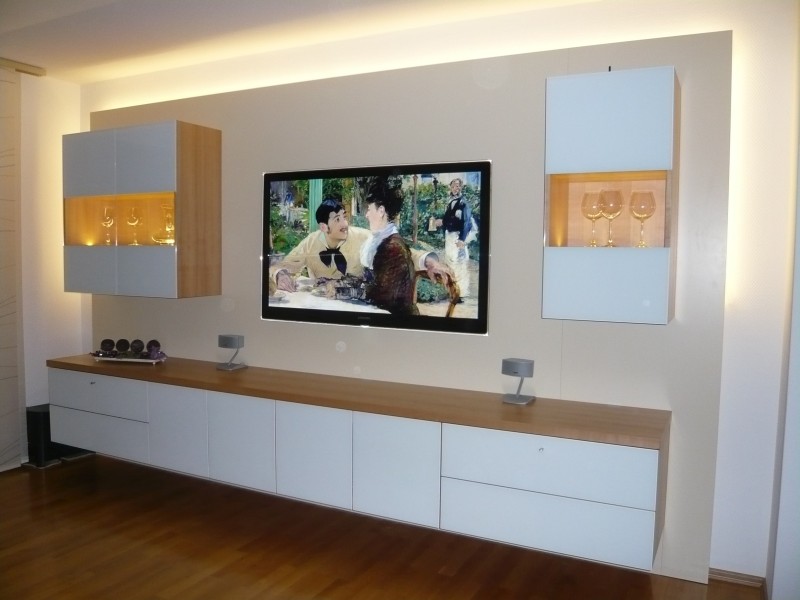 Puristische TV-Wand mit integrierten Lautsprechern