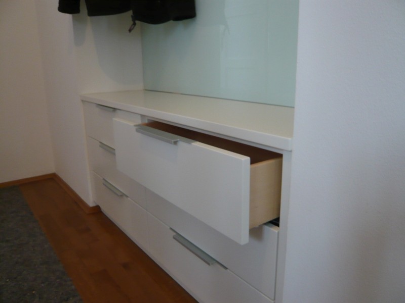 Garderobe mit viel Stauraum, Lack und Glas
