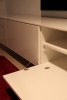 Lowboard in Hochglanz, grifflose Einbauschränke in Lack und Spiegeltüren
