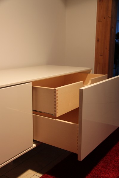 Lowboard in hochglanz, Garderobe mit Schuhschrank matt lackiert
